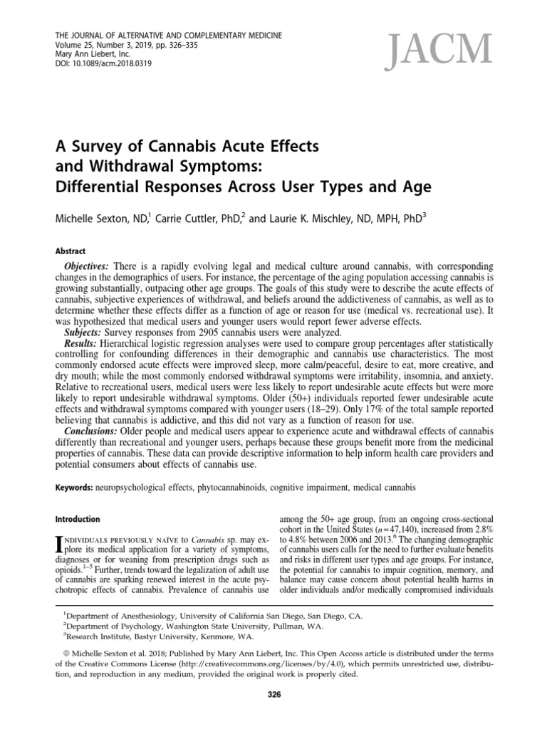 Conclusions: Older people and medical users appear to experience acute and withdrawal effects of cannabis