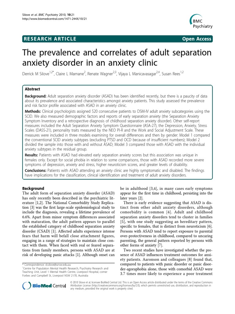 44(2):146-153. separation anxiety disorder in an anxiety clinic. BMC Psychiatry 2010