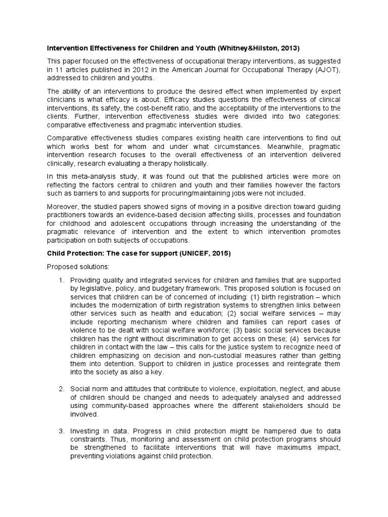 Intervention Effectiveness for Children and Youth (Whitney&Hilston, 2013)