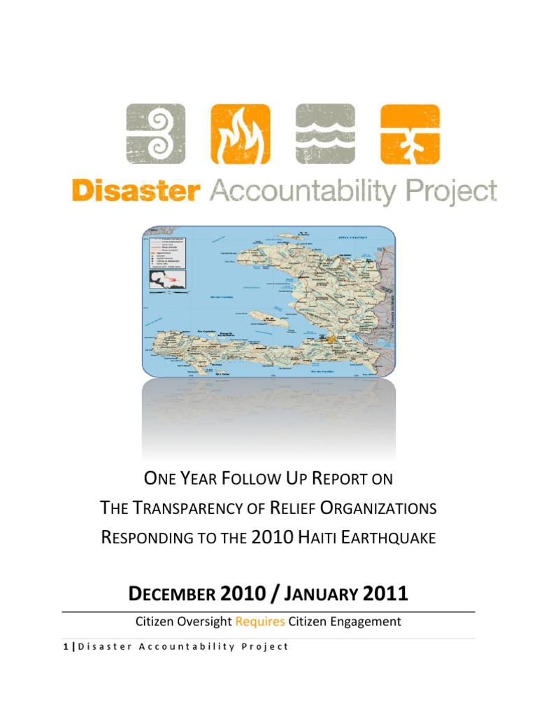 OneYear Followup Report-Transparency of Relief Organizations Responding To 2010 Haiti Earthquake
