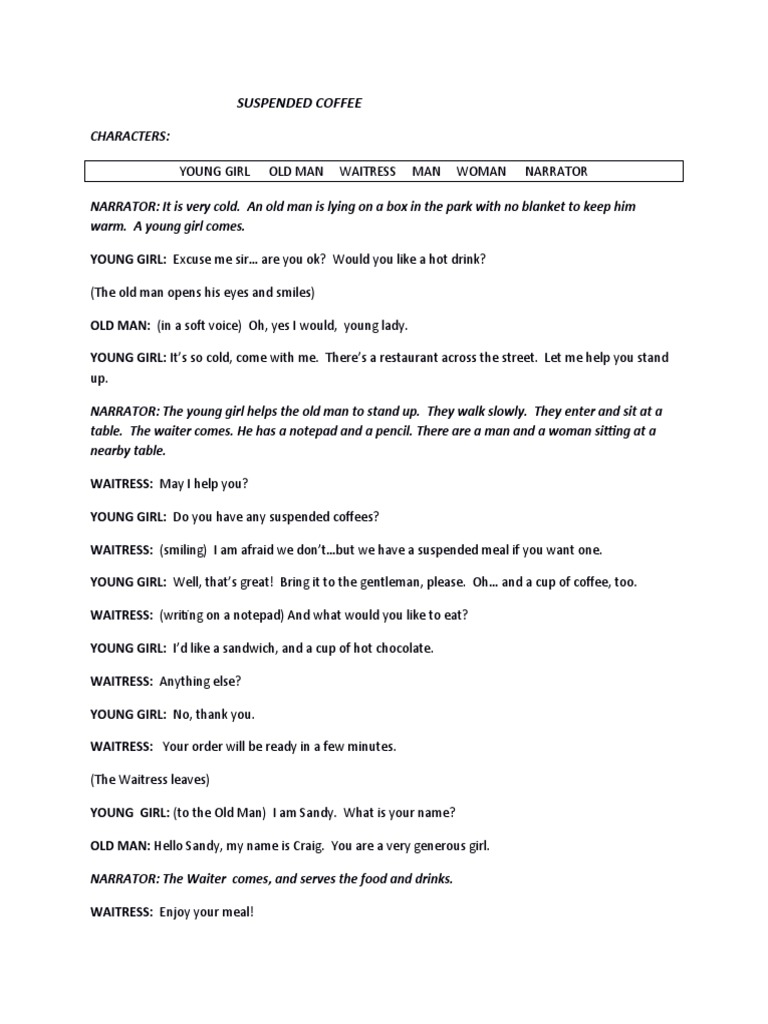 WAITRESS: That’s right. Then, a customer-in-need asks for a suspended coffee and has a hot drink