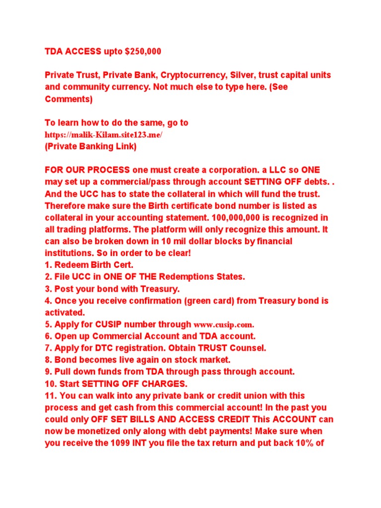 AND YOUR UCC TRUST IS SET UP I HAVE LEARNED THEY WILL THEN
