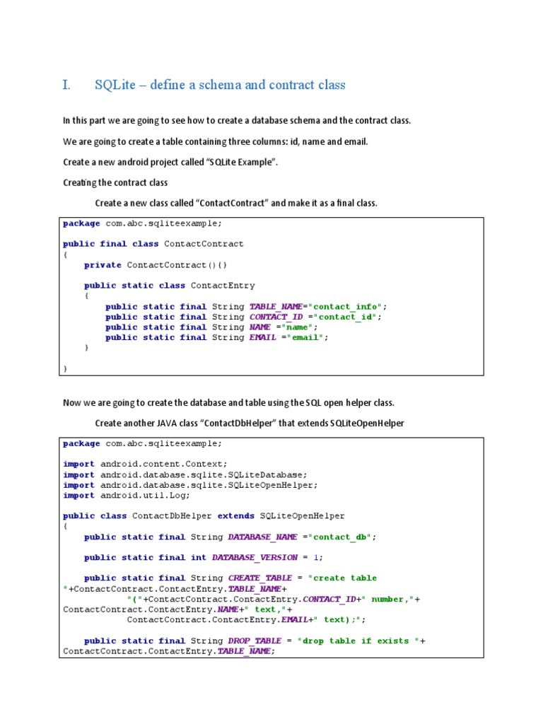 Create another JAVA class “ContactDbHelper” that extends SQLiteOpenHelper