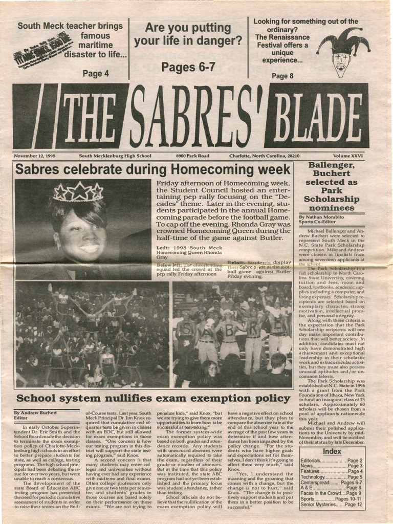 November 12, 1998 South Mecklenburg High School 8900 Park Road Charlotte, North Carolina, 28210 Volume XXV I