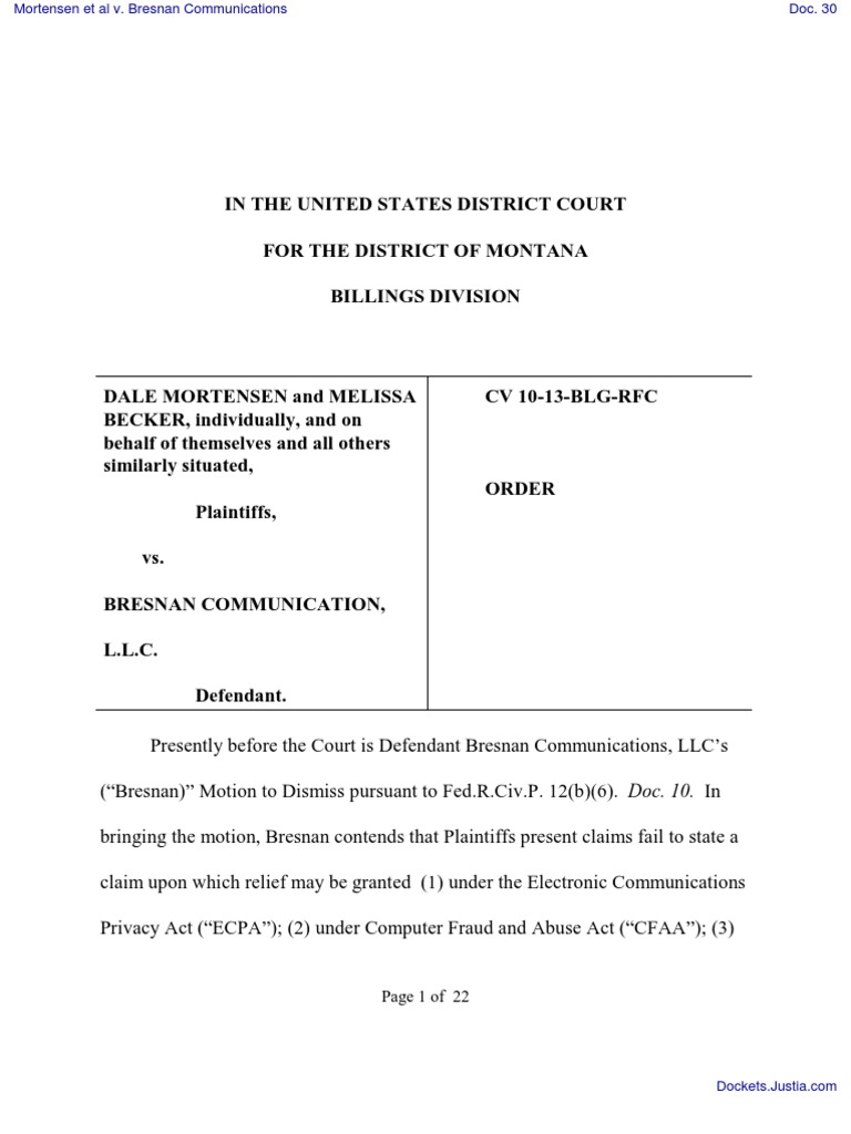 Bresnan’s Motion to Dismiss Plaintiffs’ claim under Computer Fraud and Abuse