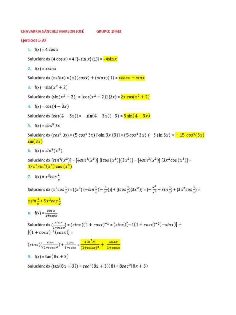 Solución: dx (4 cos 𝑥) = 4 [(- sin 𝑥) (1)] = - 4sin 𝑥