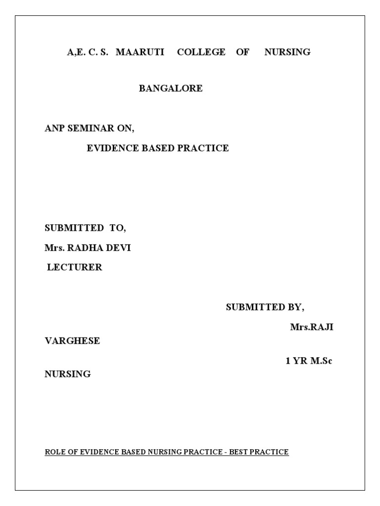 ROLE OF EVIDENCE BASED NURSING PRACTICE - BEST PRACTICE