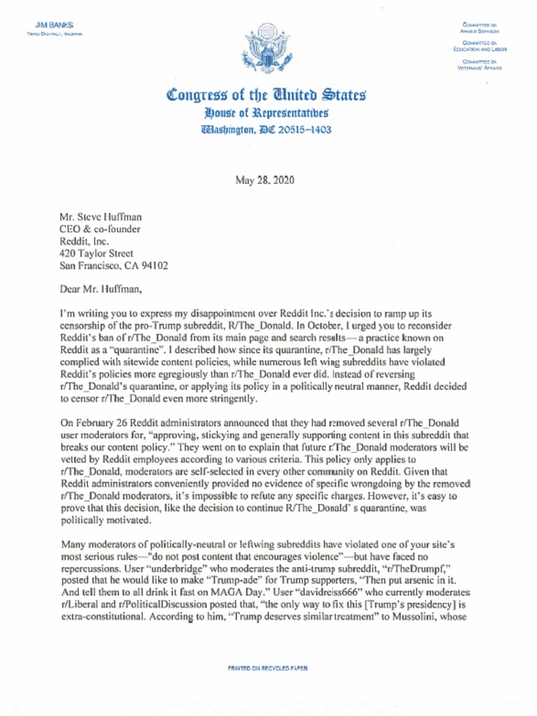 Reddit censorship letter
