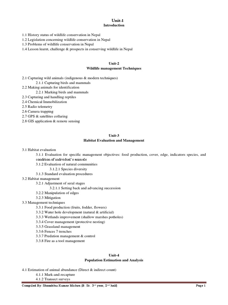 Wildlife Conservation & Management (B. Sc. 3rd year 2nd half) Compiled By Shambhu Kumar Mishra Page 113