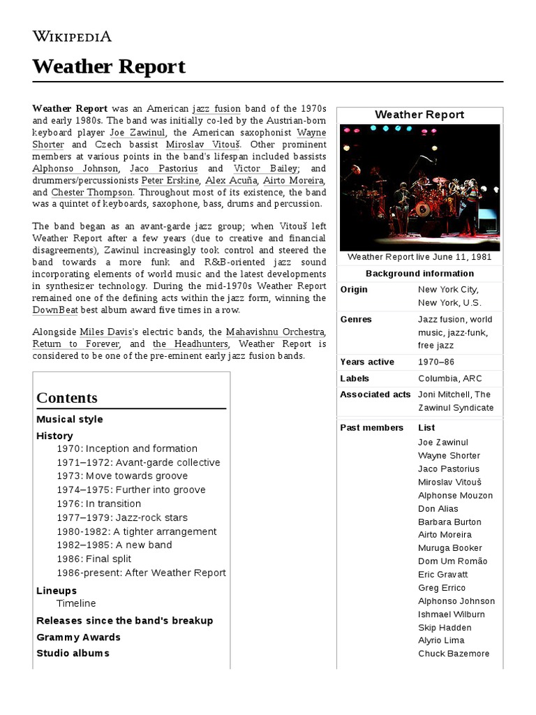 Weather Report: Weather Report Was An American Jazz Fusion Band of The 1970s