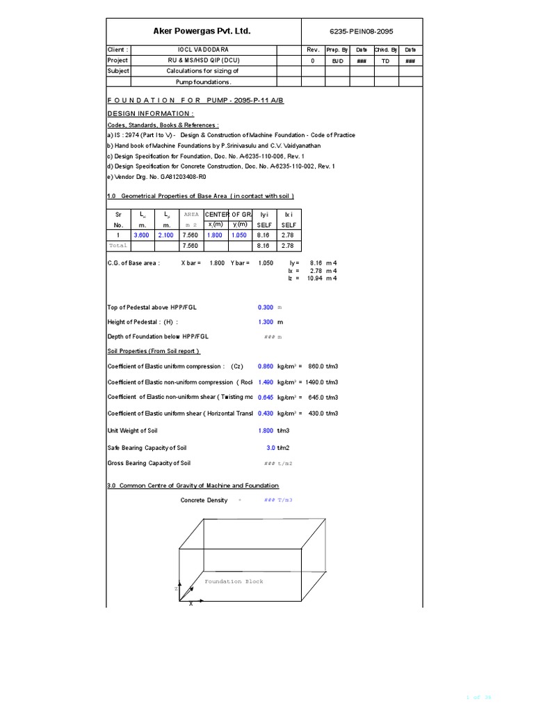 F O U N D A T I O N F O R PUMP - 2095-P-10 A/B 23rd October 2008