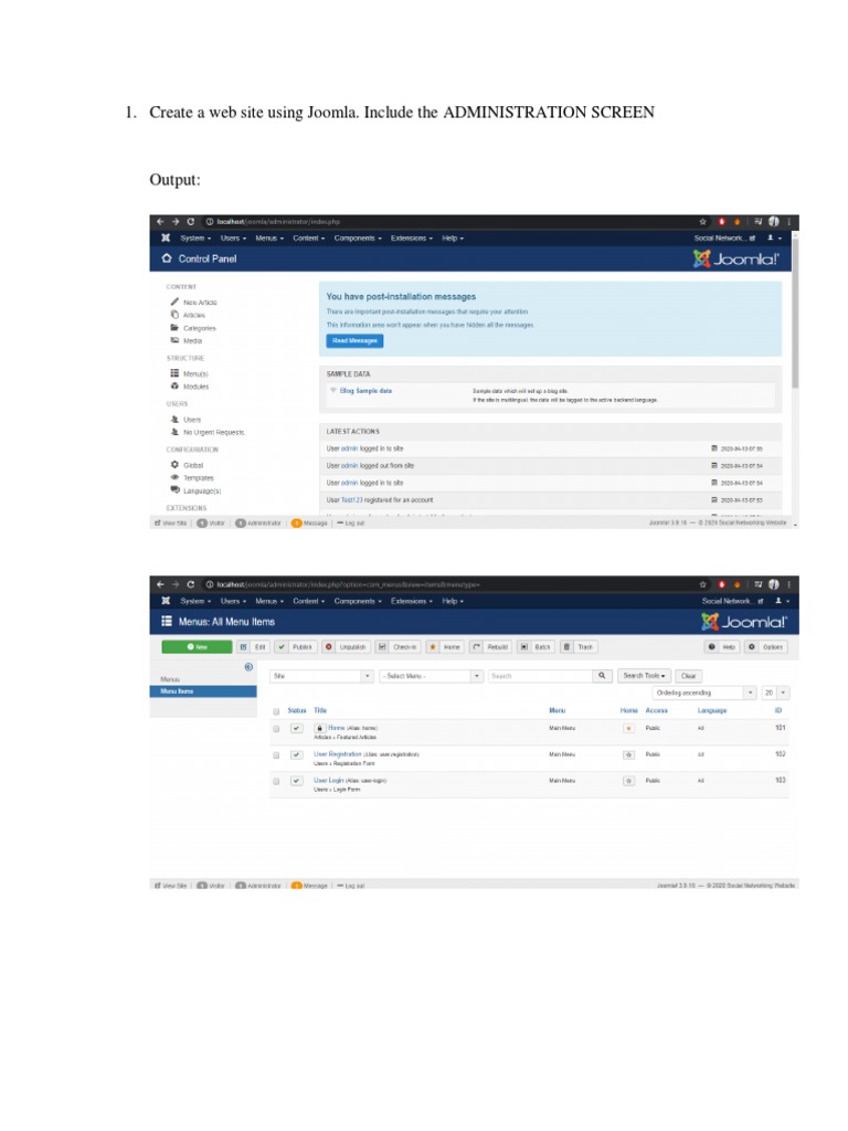Create A Web Site Using Joomla. Include The ADMINISTRATION SCREEN