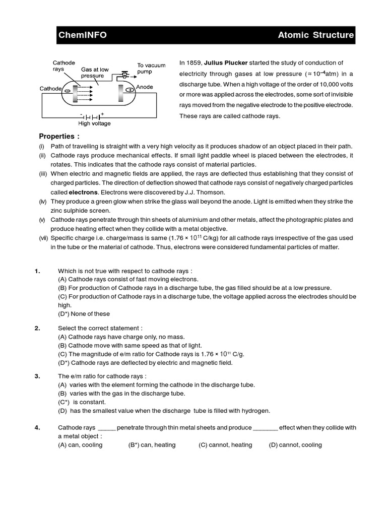 (vii) Specific charge i.e. charge/mass is same (1.76 × 1011 C/kg) for all cathode rays irrespective of the gas used