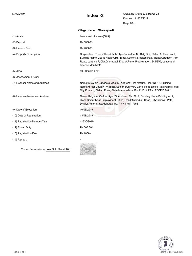 (7) Licensor Name and Address Name: Mrs Jain Sangeeta Age: 53 Address: Flat No:124, Floor No:12, Building