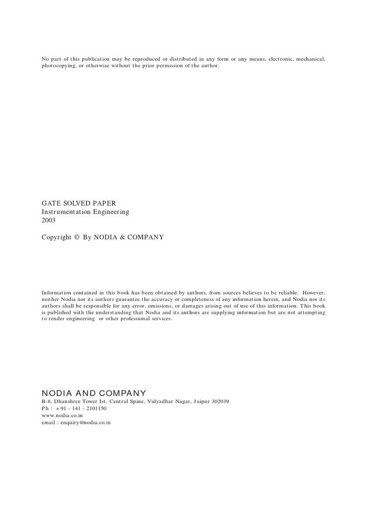 Nodia and Company: Gate Solved Paper Instrumentation Engineering 2003