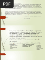 Cell membranes are partially permeable and regulates the flow of materials in and out of the cell. They