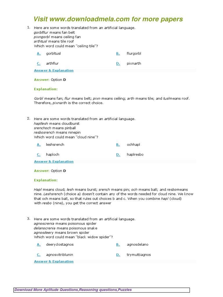 Download More Aptitude Questions,Reasoning questions,Puzzles