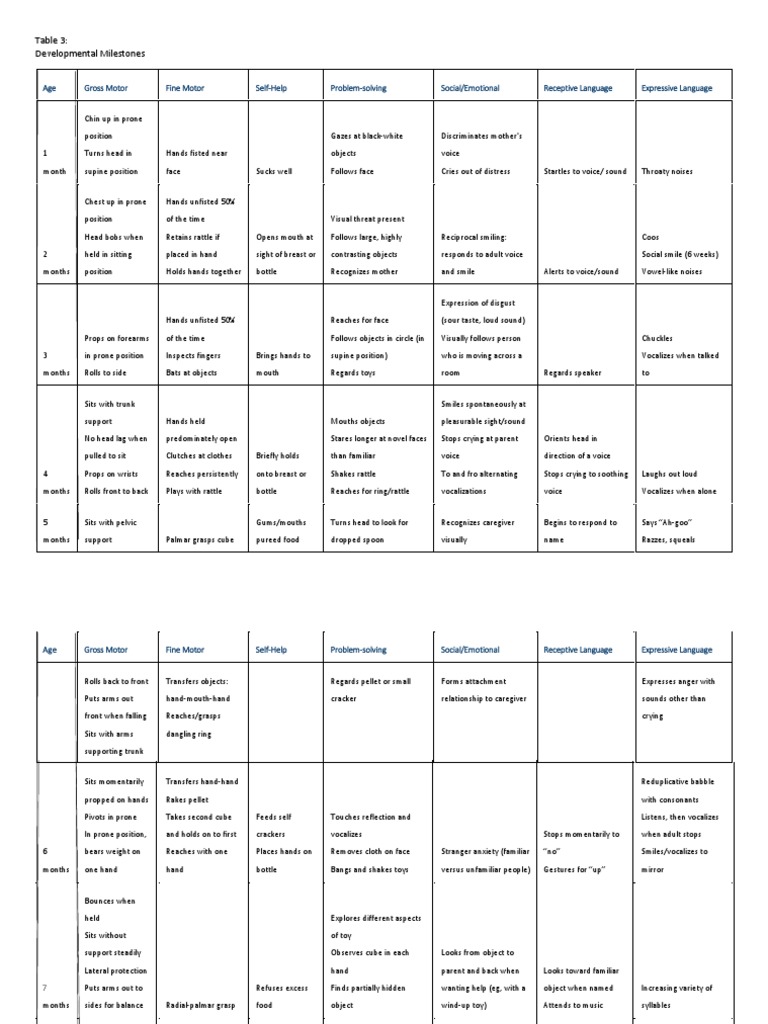 months Rolls to side Bats at objects mouth Regards toys room Regards speaker to