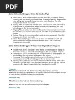 Babinski Stroking bottom of foot causes big toe to raise Present at birth and disappears at 9-10 months. If found when child is