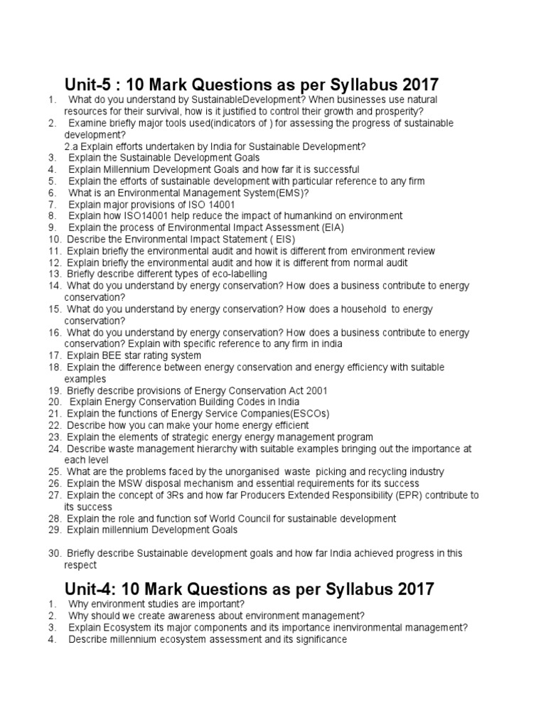 Unit-2: 10 Mark questions as per Syllabus 2017