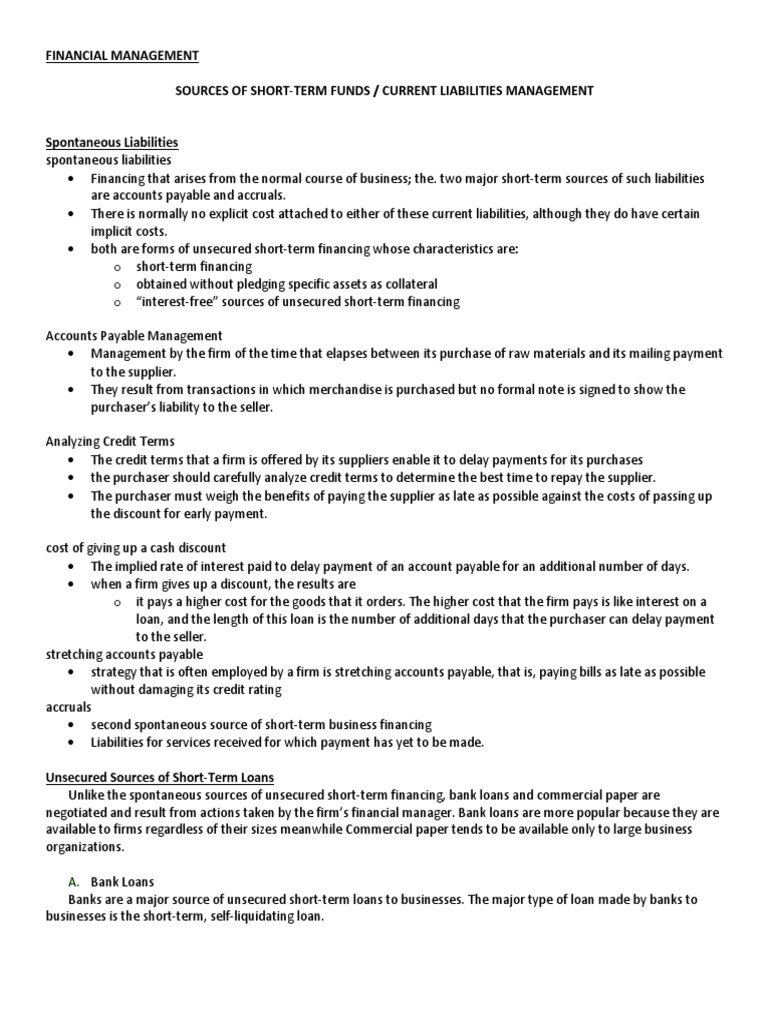Unsecured Sources of Short-Term Loans