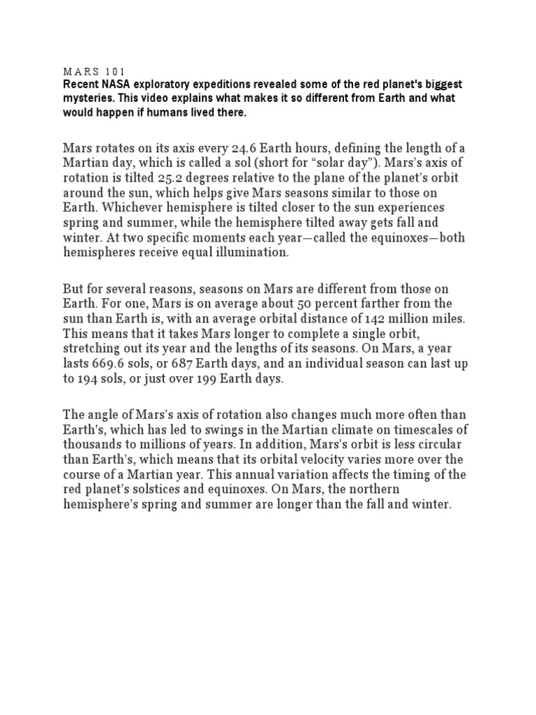Martian day, which is called a sol (short for “solar day”). Mars’s axis of