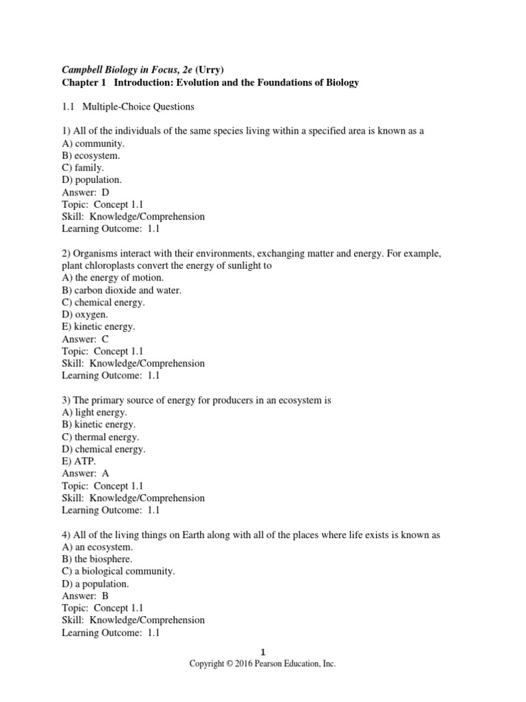 Chapter 1 Introduction: Evolution and the Foundations of Biology