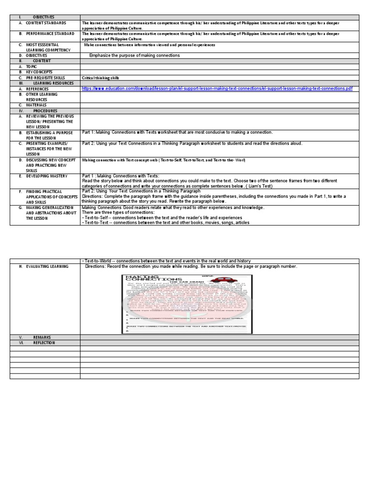 A. REFERENCES https://www.education.com/download/lesson-plan/el-support-lesson-making-text-connections/el-support-lesson-making-text-connections.pdf
