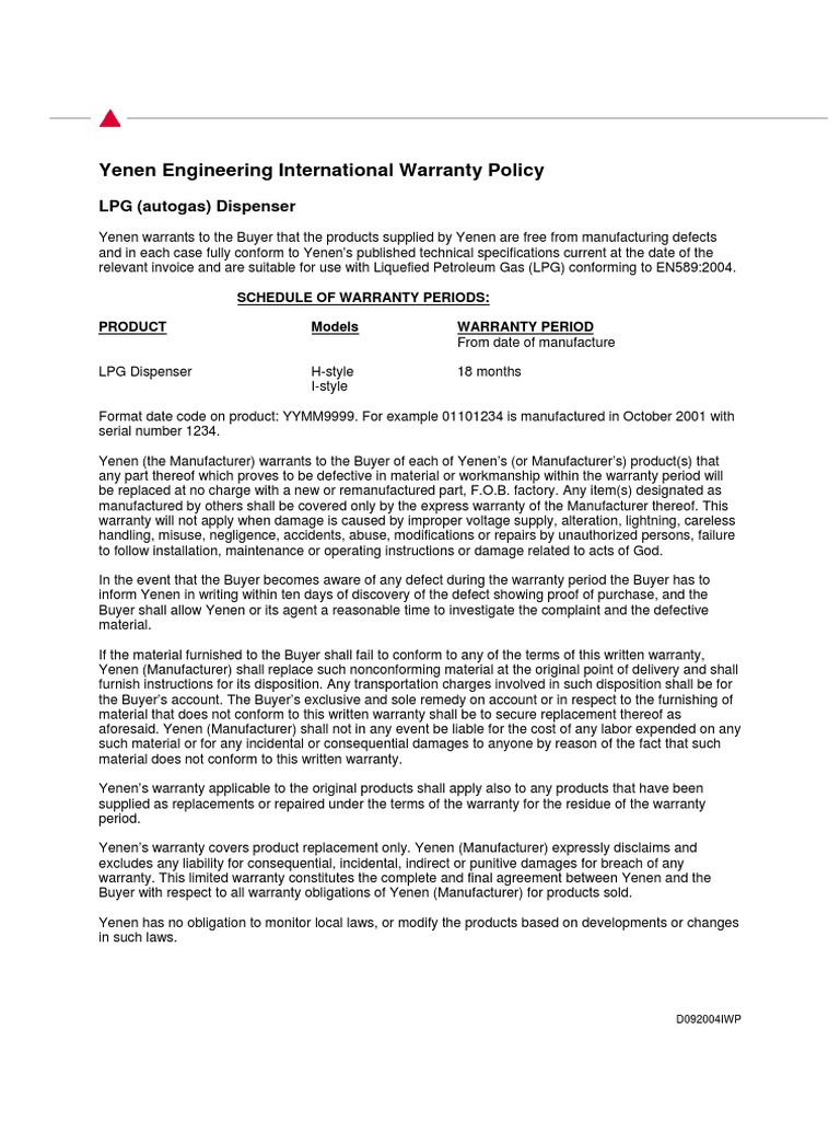 Yenen Engineering International Warranty Policy