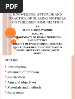 a great role in child care. Their ability to have the right knowledge will enhance their practice and attitude toward immunization. This cross- sectional descriptive