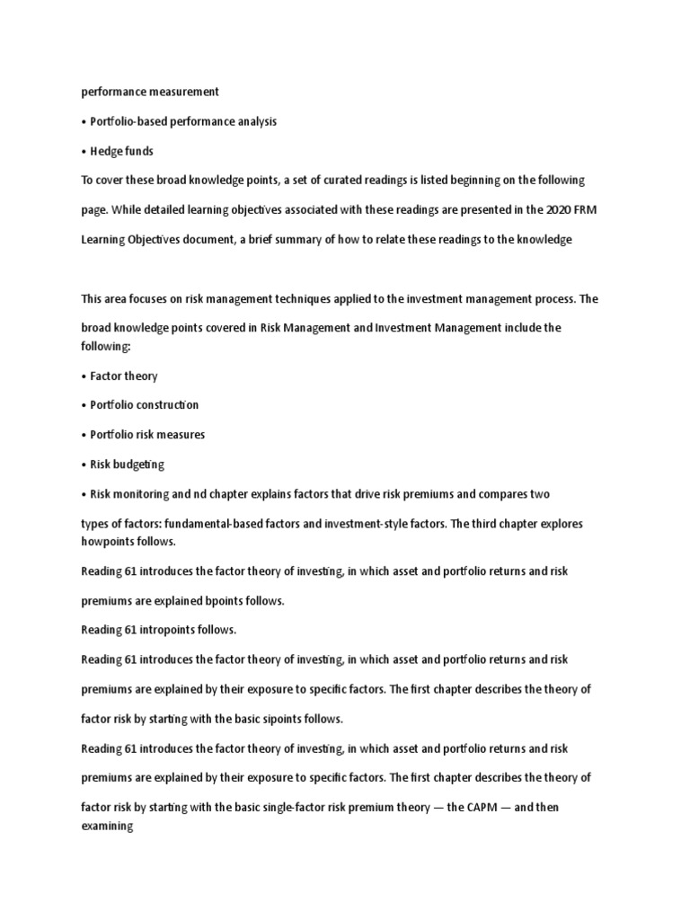 page. While detailed learning objectives associated with these readings are presented in the 2020 FRM
