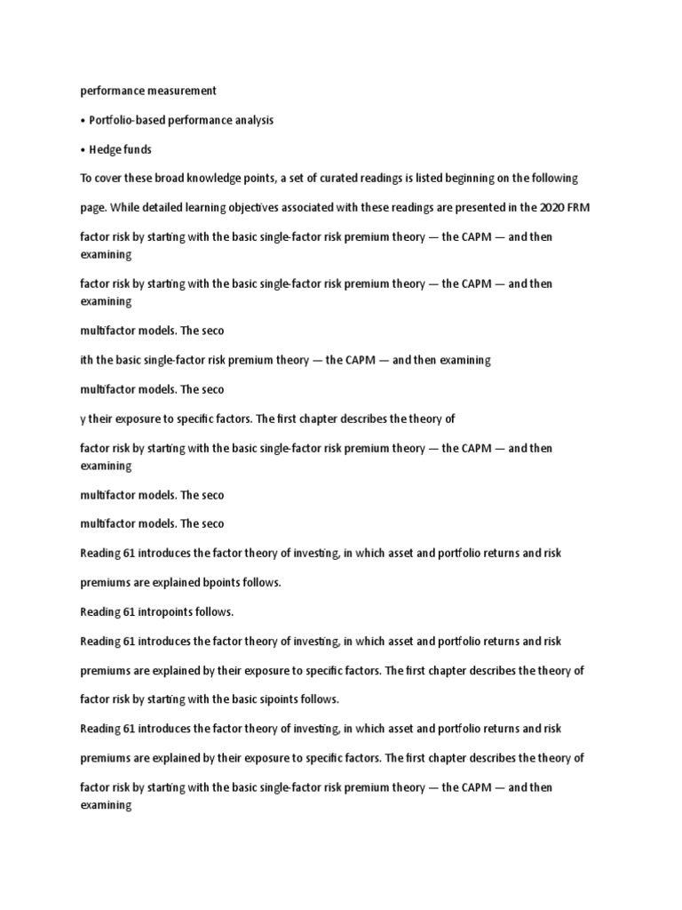page. While detailed learning objectives associated with these readings are presented in the 2020 FRM