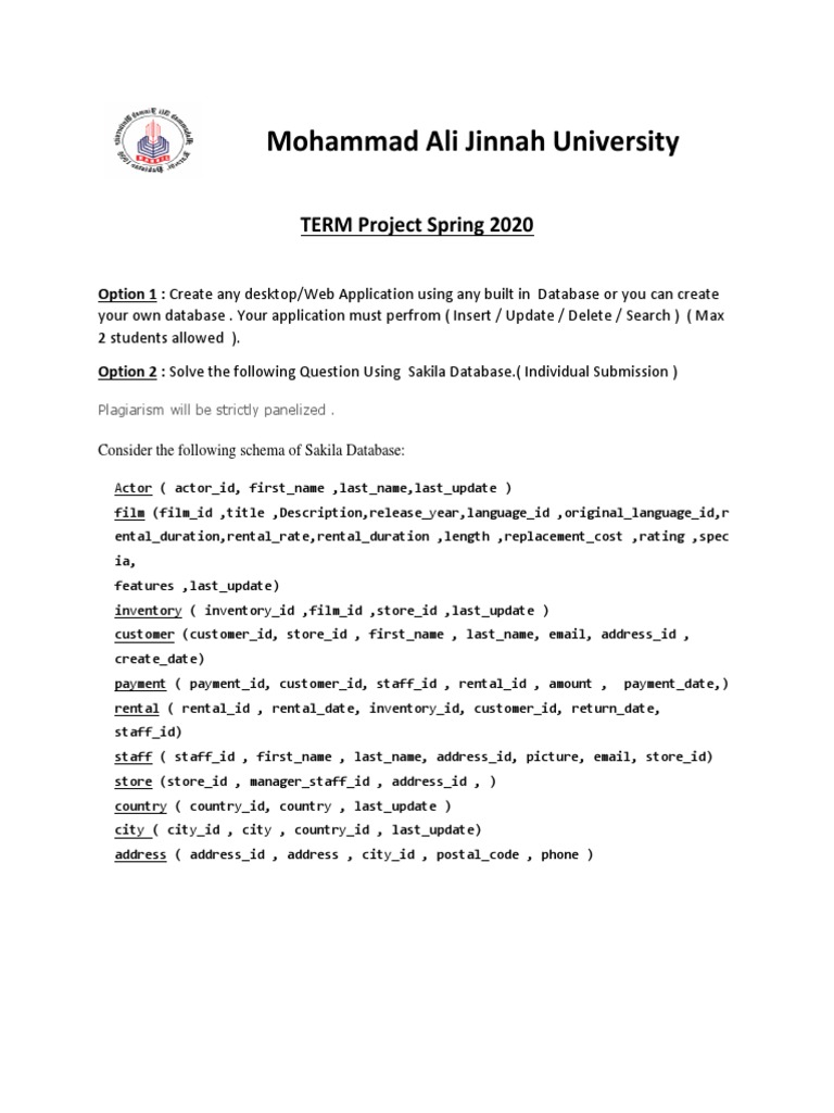 Option 2 : Solve the following Question Using Sakila Database.( Individual Submission )