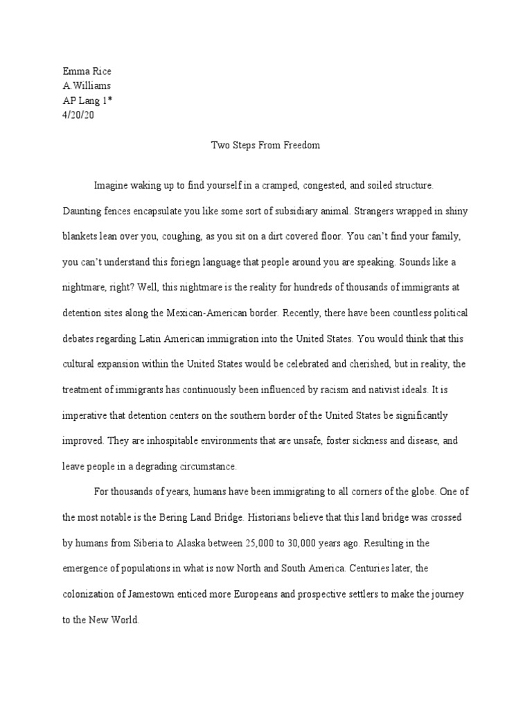 portion of my paper and to support my claim about how immigration is prevalent in today’s culture.
