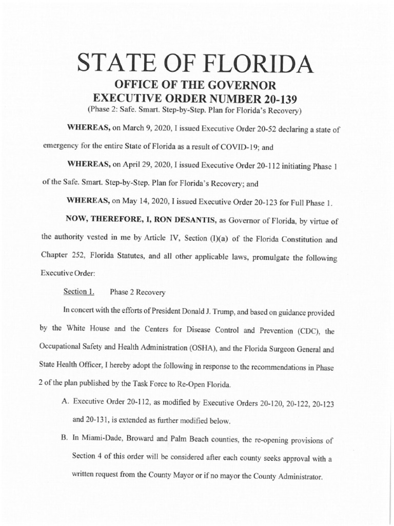 (Phase 2: Safe. Smart. Step-by-Step. Plan for Florida’s Recovery)