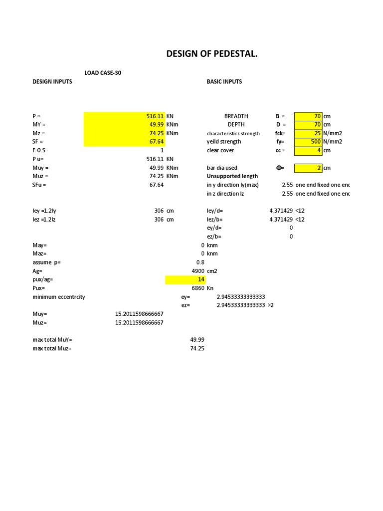 Mz = 74.25 KNm characteristics strength fck= 25 N/mm2