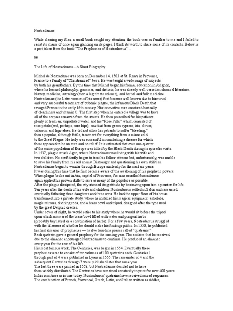 reputation of Nostradamus as one of the world’s greatest prophets.