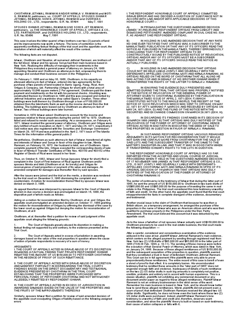 An appeal therefrom was interposed by spouses Ishwar to the Court of Appeals estate in the Philippines. The trial court considered this lone testimony unworthy