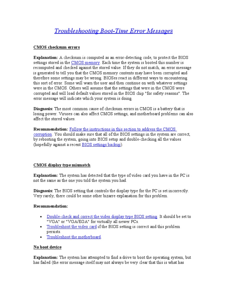 Troubleshooting Boot-Time Error Messages