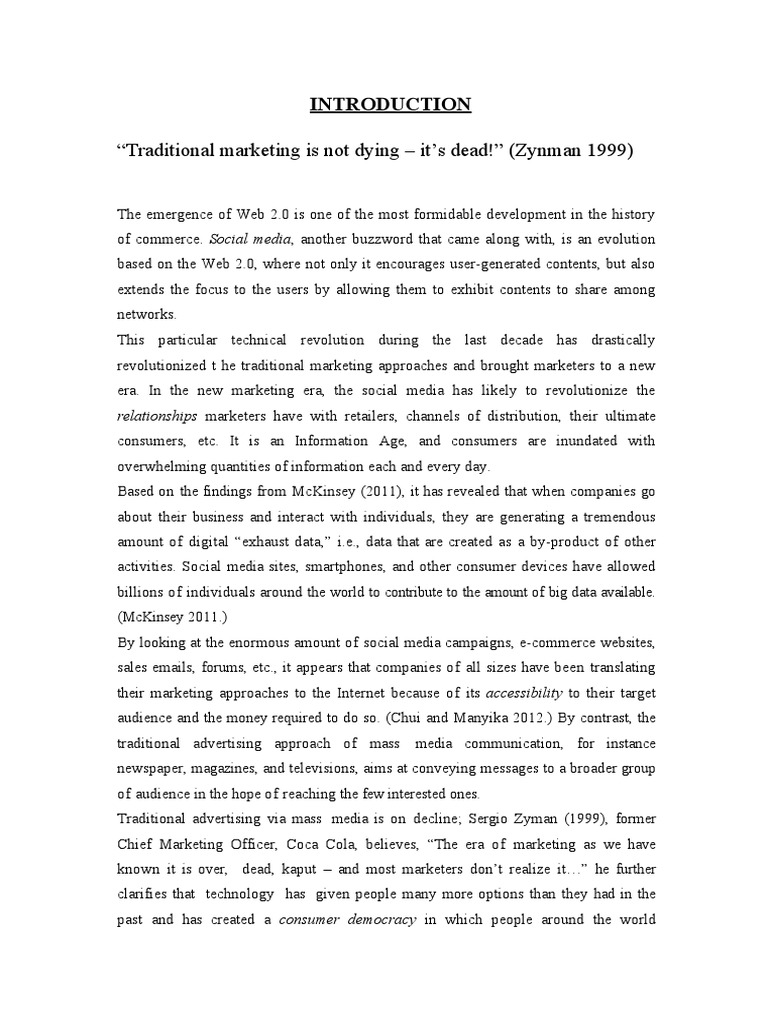 “Traditional marketing is not dying – it’s dead!” (Zynman 1999)