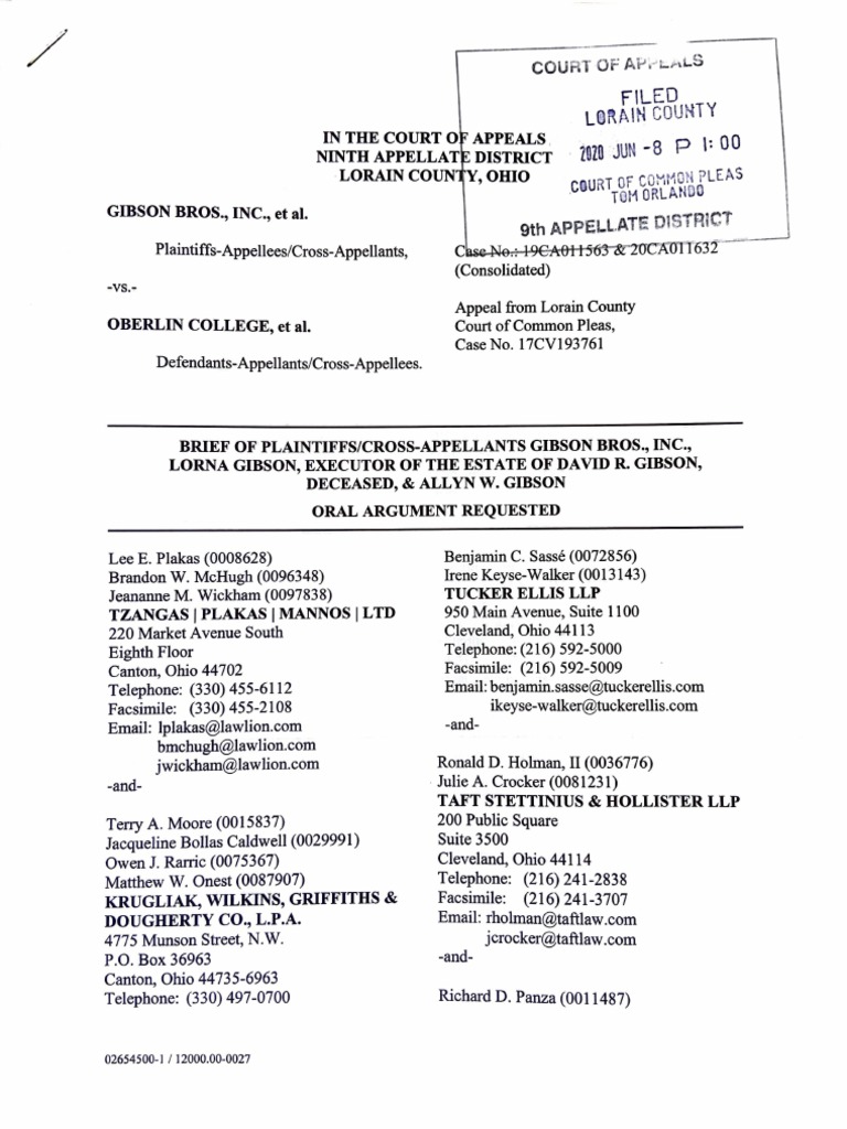 464899224 Gibson s Bakery v Oberlin College Appeal Gibson s Cross Appeal Brief