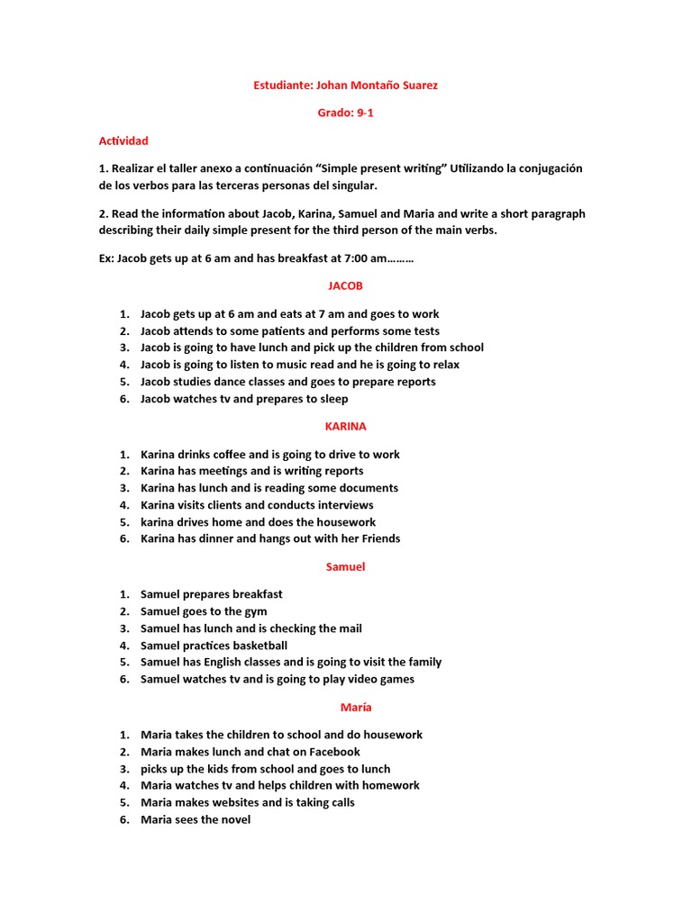 1. Realizar el taller anexo a continuación “Simple present writing” Utilizando la conjugación