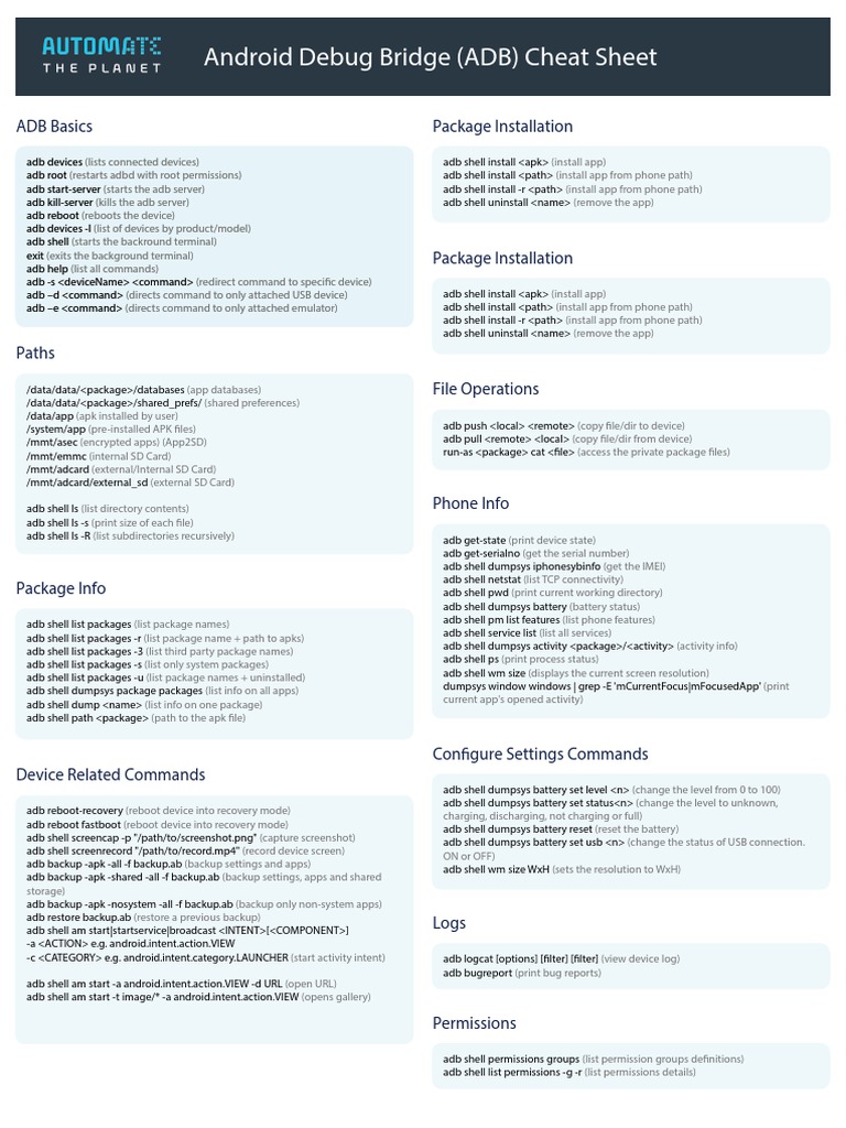 Android Debug Bridge (ADB) Cheat Sheet