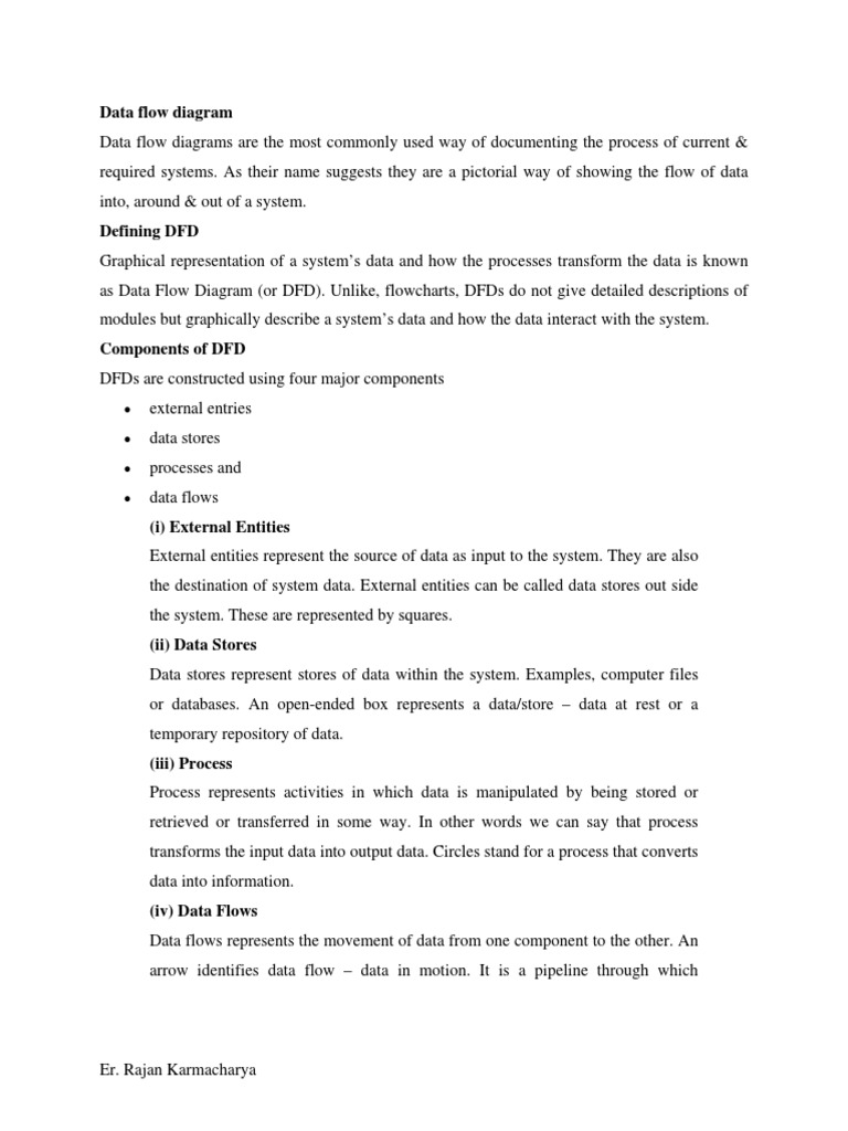 as Data Flow Diagram (or DFD). Unlike, flowcharts, DFDs do not give detailed descriptions of
