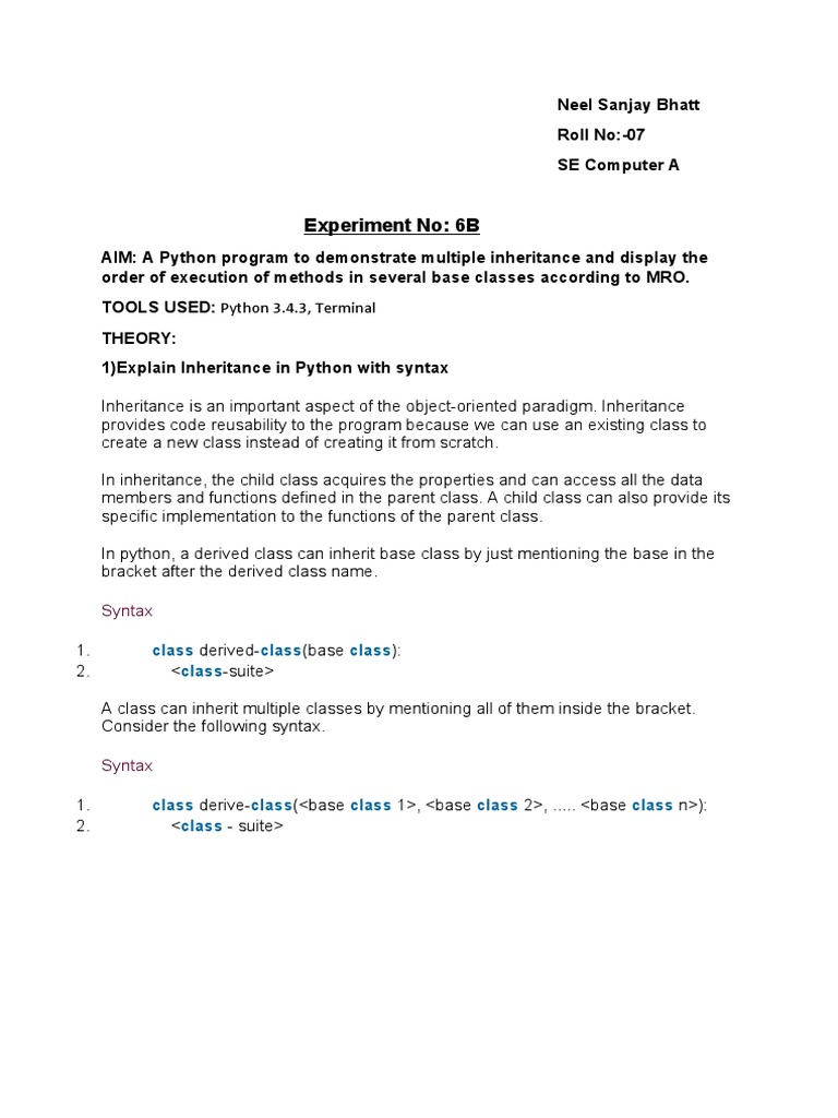 1)Explain Inheritance in Python with syntax