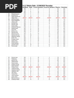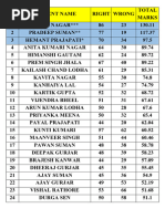 The document contains a table with 5 students' names, marks, and percentages. It shows that Suresh scored the highest marks of 55 and percentage of 41.25, while Sunil scored the lowest marks of 23 and percentage of 17.25. The total marks of all 5 students is 265.