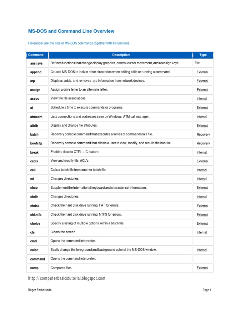 Hereunder are the lists of MS-DOS commands together with its functions.