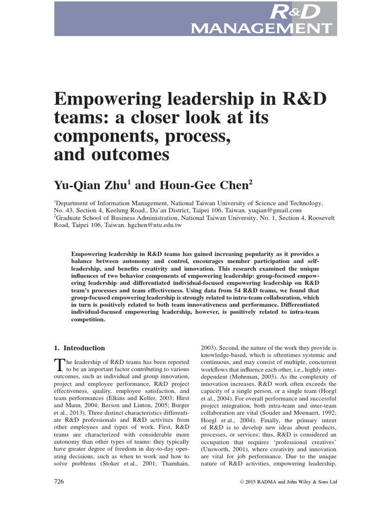 Yu-Qian Zhu and Houn-Gee Chen Empowering leadership in R&D teams