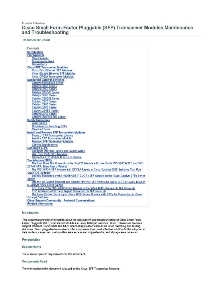 Factor Pluggable (SFP) Transceiver Modules in Cisco Catalyst Switches. Cisco Transceiver Modules