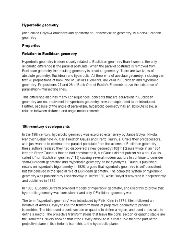 (also called Bolyai–Lobachevskian geometry or Lobachevskian geometry) is a non-Euclidean